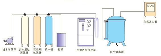 整個水處理過程即對自來水進行深度處理通過精濾過濾器過濾、軟化、膜(RO反滲透)分離、臭氧殺菌等過程,去除水中有害重金屬、有機物、細菌及病毒等雜質,使其成為優質飲用凈水(純凈水)通過專設的特種衛生管道直接送入每家每戶,供居民使用,與原有的自來水徹底分開,原自來水成為日雜用水。(變頻供水是指對處理過的純水進行智能化向用戶送水)整全純水生產工藝還可參照桶(瓶)裝純凈水生產工藝